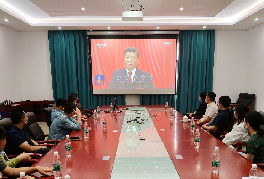 ![]() 中色鑫誠巴依姆項目部收看現場 |