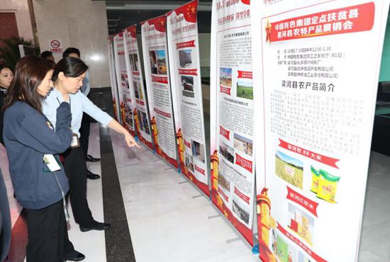 在第六個“國家扶貧日”和第二十七個國際消除貧困日到來之際,為貫徹落實習近平總書記對脫貧攻堅工作作出的重要指示精神,響應黨中央關于廣泛動員各方面力量參與扶貧開發的號召,中國有色集團在集團總部舉辦梁河縣農特產品展銷會和定點扶貧專題展示系列活動,宣傳扶貧理念,拓展扶貧渠道,凝聚扶貧合力,營造人人關心扶貧、人人支持扶貧、人人參與扶貧的良好氛圍。
