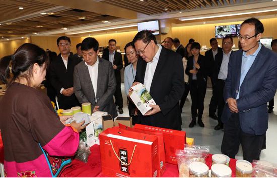 消費扶貧與產業扶貧、就業扶貧緊密聯系,是調動群眾依靠自己力量走出貧困的重要舉措,有利于促進穩定脫貧和貧困地區的可持續發展。在加大集團公司集中采購力度基礎上,10月17日,中國有色集團在員工之家餐廳舉辦了“不忘初心擔使命 攻堅克難助脫貧”定點扶貧梁河縣農特產品展銷會,活動邀請了梁河縣委、縣政府推薦的梁河縣兆宗茶葉精制廠、梁河縣垚妹食品開發有限公司、云南益坤糧油工業責任有限公司三家廠商,展示推廣銷售質優價廉的農副產品,助力消費扶貧,取得干部職工、企業與農戶的多贏效果。中國有色集團董事長、黨委書記王彤宙帶領全體在家領導班子成員出席展銷會,親切慰問了來自對口扶貧縣的參展廠商,詳細聽取了農特產品介紹,并帶頭推介、采購相關產品。